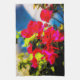 This Kitchen Towel will add some colour to your life. The artwork is an original abstract photograph by ZoeSPEAK of a bougainvillea bush in the afternoon sunlight. The flowers on the bush are actually tiny and white. The brightly coloured parts which surround them are called bracts. In this photo, the bracts are a deep hot pink, almost glowing. Green leaves and a cool blue shadow on a pale yellow stucco wall complete this colourful image.