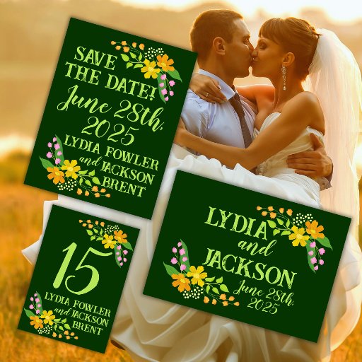 Bright Flowers on Deepest Green Wedding Thank You Card