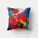 This 16” Throw Pillow will add some colour to your life. The artwork is an original abstract photograph by ZoeSPEAK of a bougainvillea bush in the afternoon sunlight. The flowers on the bush are actually tiny and white. The brightly coloured parts which surround them are called bracts. In this photo, the bracts are a deep hot pink, almost glowing. Green leaves and a cool blue shadow on a pale yellow stucco wall complete this colourful image.
