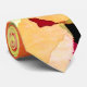 Bright collage-like "flower" design. Bright yellows and reds against a stark black background. Flowers arranged in a pattern of a larger flower.