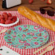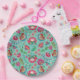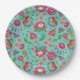 bright folk flower turquoise pattern wedding paper plate