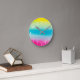 This playfully designed round clock is the perfect useful decor to brighten up any room. Handwritten typography paired with a bright pink, blue and yellow watercolor gradient base makes this a nice piece of eye catching decor.