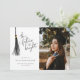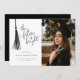 Modern and whimsical graduation photo announcement card featuring an illustration of a black tassel with a hand written typography text that says "the future is bright."