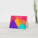 Thank You card with a cool geometric design. Many brightly colored triangles, shapes and pyramids. Colors include pink, turquoise blue, bright blue, royal purple, orange and yellow. A modern contemporary design.
