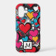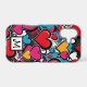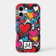 Give your phone contemporary flair with this colorful hearts design, featuring layered red, pink, yellow, and turquoise hearts in a street art style against a black background. The customizable monogram initial adds a personal touch, making it a vibrant statement piece for everyday use. Designed for those who love expressive color and energetic design.