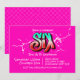 A messy bright pink graffiti invitation fit for a six 6 year old.
