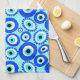 Bright Greek Eye Pattern on Aqua Blue Tea Towel