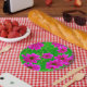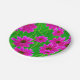 Bright Green and Pink Flower Pattern Paper Plate