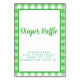 Add a touch of elegance to your gift table with our Bright Green Gingham Diaper Raffle Table Sign. Featuring a stylish Bright Green Gingham pattern and the words "Diaper Raffle" along with " Please place your ticket here! Thank You for Celebrating with Us," this tabletop sign is a charming way to guide your guests.