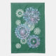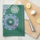 Beautiful green kitchen towel with bright modern decoration - winter watercolor snowflakes.