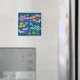 Bright Happy Colourful flowers Dark Teal+Initials Magnet