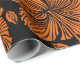 Bright hawaiian seamless pattern with tropical hibiscus flowers on black background in orange colours.