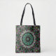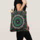 Bright hue on dark in medallion-style kaleidoscope tote bag