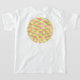 100% cotton so perfect for summer, It is a nicely designed t-shirt, the fabric is soft and the seams finished well, the body of the t shirt has no side seams. I bought a medium size for my two grandsons, aged 9 and 8 it will be slightly big on them but I would rather that than too small