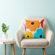 A colourful floral throw pillow featuring large, bright, flowers on a beige background. Simply add this rug pillow your cart, get it home, then enjoy it in your space.