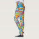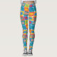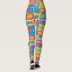 These leggings have a mid-century modern design of bright colours that make rounded rectangles with other rectangles inside formed by a collection of lines.