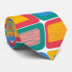 This necktie has a mid-century modern design of bright colours that make rounded rectangles with other rectangles inside formed by a collection of lines.