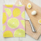 Bright Lemon Design on Soft Pink Background Tea Towel