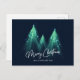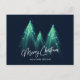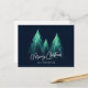 Sparkling Christmas card with beautiful illuminated Christmas trees with green light rays and small twinkling lights. With a dark coloured background and the Text Merry Christmas and a Happy New Year. Also great to use as a business card for lamp, steel en welding companies.