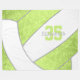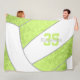 This cute volleyball themed fleece blanket for her volleyball room features the image of a simple, abstractly oversized bright lime green and white volleyball that covers the entire blanket - the lime volleyball panels are blended with a girly floral kaleidoscopic pattern - athlete's name and jersey number are positioned off centre, customisable in coordinating lime and grey - by katz_d_zynes