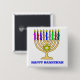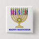 A bright Hannukah menorah with the words Happy Hannukah welcomes the holiday. Happy latke eating!