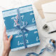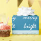 Bright Merry Script Blue Christmas Family Name Wrapping Paper. Add your name and make a unique gift wrapping paper.