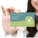 Bright modern unique Dentist office business cards in a trendy simple design in shades of green with dentistry tooth and toothbrush emblem in coordinated colours. An editable online template for the Dental industry.