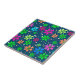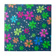 Bright multi-coloured chamomile flowers on a blue ceramic tile