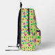 Bright multi-coloured chamomile flowers on a yello printed backpack
