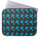 Bright Neon Blue Crosses on a Black fabric Laptop Sleeve