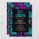 Bright Neon Geometric Pattern Black 25th Birthday Invitation