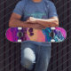 Bright Neon Retro Wave and Palm Trees Skateboard