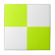 This ceramic tile features a modern chequered pattern in bright highlighter yellow and white. The colours are customisable in the Designer tool.