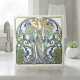 This Art Nouveau tile design features an graceful female figure framed by swirling peacocks, irises, lotus leaves and botanical curves. The palette blends soft sage green, bright blue and gold for a beautifully layered, painterly look. Peacock-style feather motif and sweeping tendrils give the composition its signature Art Nouveau movement and grace. Richly detailed yet soothing in tone, this design captures the enchanting, nature-driven artistry of the era. Search ID1193 to see other tiles in this unique design set. Note: design may contain generative content