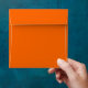 Bright orange and black envelope to match the bright orange pumpkin face Halloween Party invitations. You can set the exterior colour to create your own black lined envelop. Create your own personalised text design.