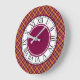 Bright Orange and Maroon Sporty Plaid Large Clock