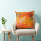 Throw pillow designed using patterns from the Marlyn Daggett painting, Signature. Bright oranges and teal blues. 20 x 20 inches