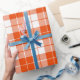 A wrapping paper designed with a bright orange and white plaid pattern in large size. Customise the white background among other options.