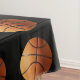 Pictured on a black background are orange basketballs, colorful and quite dazzling this high quality cotton table cloth would give a lovely vibrant effect on your dining table,