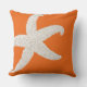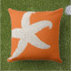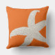 Bright, persimmon orange square, throw pillow with big starfish / sea star images. Coastal home decor accent will brighten any room of the house.