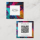 Bright Orange Blue Qr Code Colourful Marble Patter Square Business Card