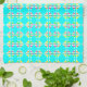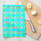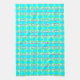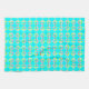 Bright orange, green, white abstract tea towel with pink, sails, turquoise background