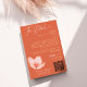 A modern wedding detail card in trendy bright orange and grapefruit red. This shade of orange is called Verona Sunset. Details in faux gold, a silhuette of a delicate flower. Modern typography and on the back add your own photo in arched shape. Make sure to add your QR code website.