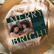 A modern and colourful holiday card featuring a horizontal or landscape-orientated photo with "Merry & Bright" overlaid in oversized gold foil lettering. Personalise with your custom holiday greeting, family name, and the year. A chic and modern minimalist choice for your Christmas greetings.