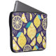 Bright pattern of lemons and cloves on a dark blue laptop sleeve