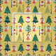 Bright pattern xmas trees and santa, red, yellow and green pattern fabric for kids.