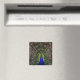 Magnet has graphic design of a bright blue peacock.