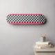 A black and white classic checkerboard pattern, with some bright vibrant pink.