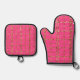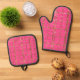 BRIGHT PINK AND GOLD GLITTER LOOK PLAID PATTERNS OVEN MITT & POT HOLDER SET