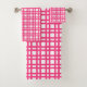 Bright pink and white grid trellis bath towel set